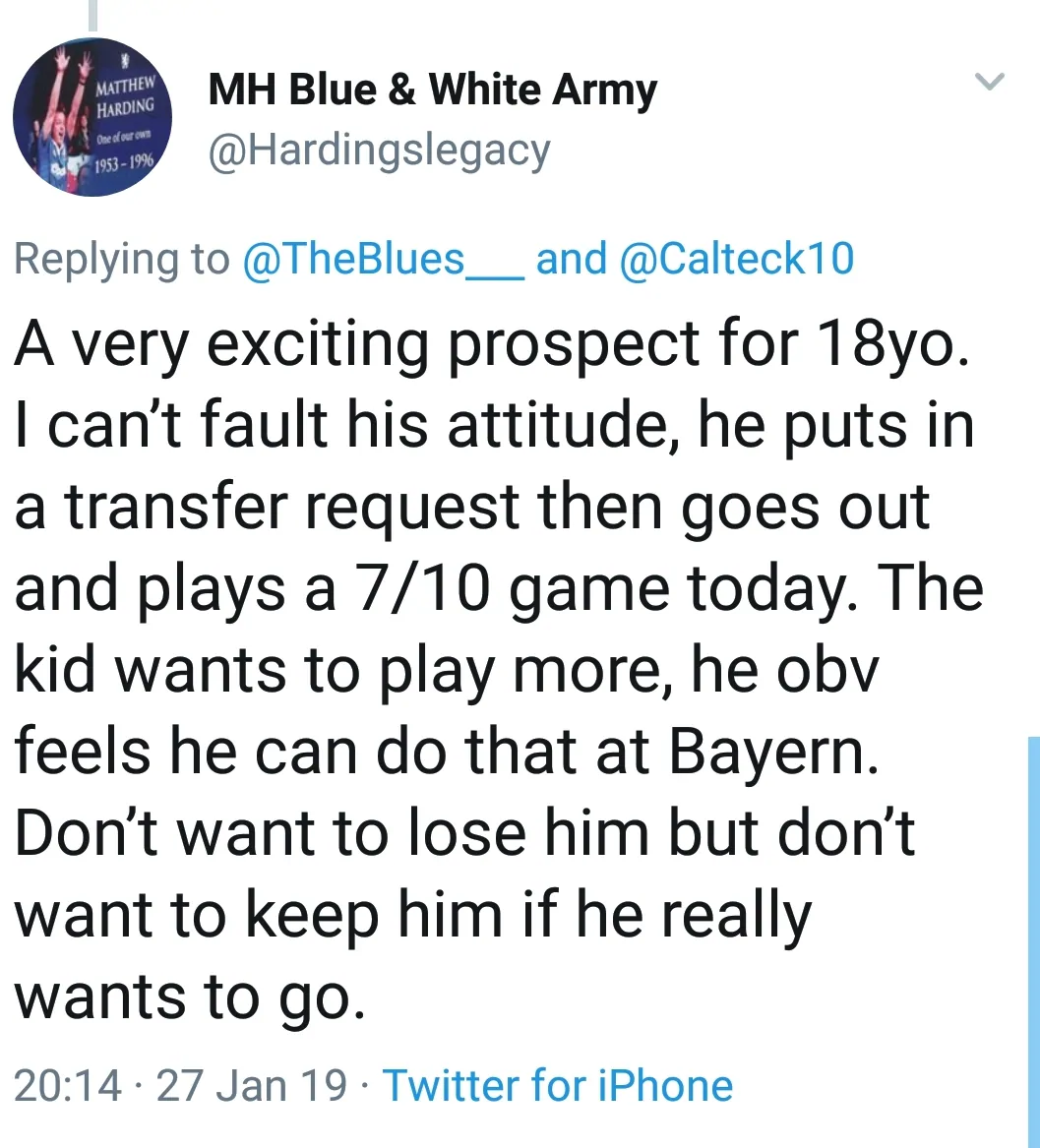 One thing is for sure, Chelsea have the power to decide. It’s important they don’t let Bayern bully them into selling. The youngster has 18-months left on his contract. Even leaving at the end of it would still require compensation being paid due to his age.