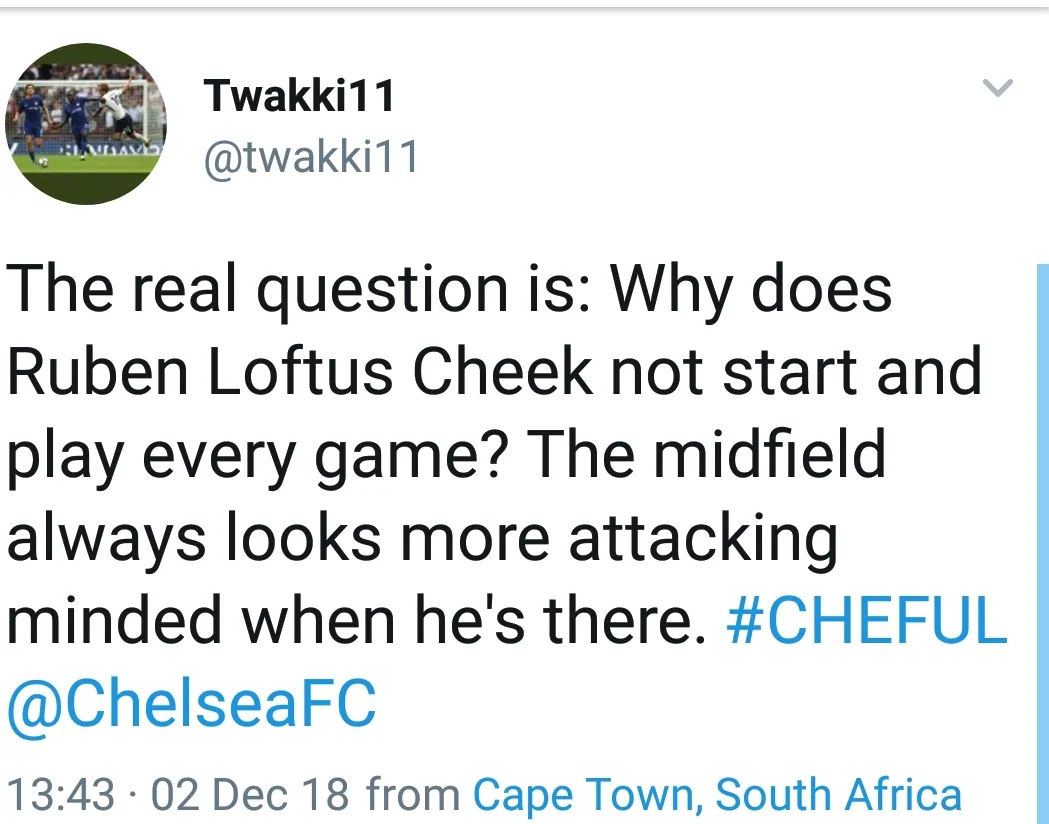 It’s not the first time Loftus-Cheek has made an impact this season. A wonderfully taken Hat-trick against BATE Borisov in the Europa League raised eyebrows amongst Blues fans. Chelsea supporters were further impressed by his late performance yesterday, as they took to social media to show their approval.