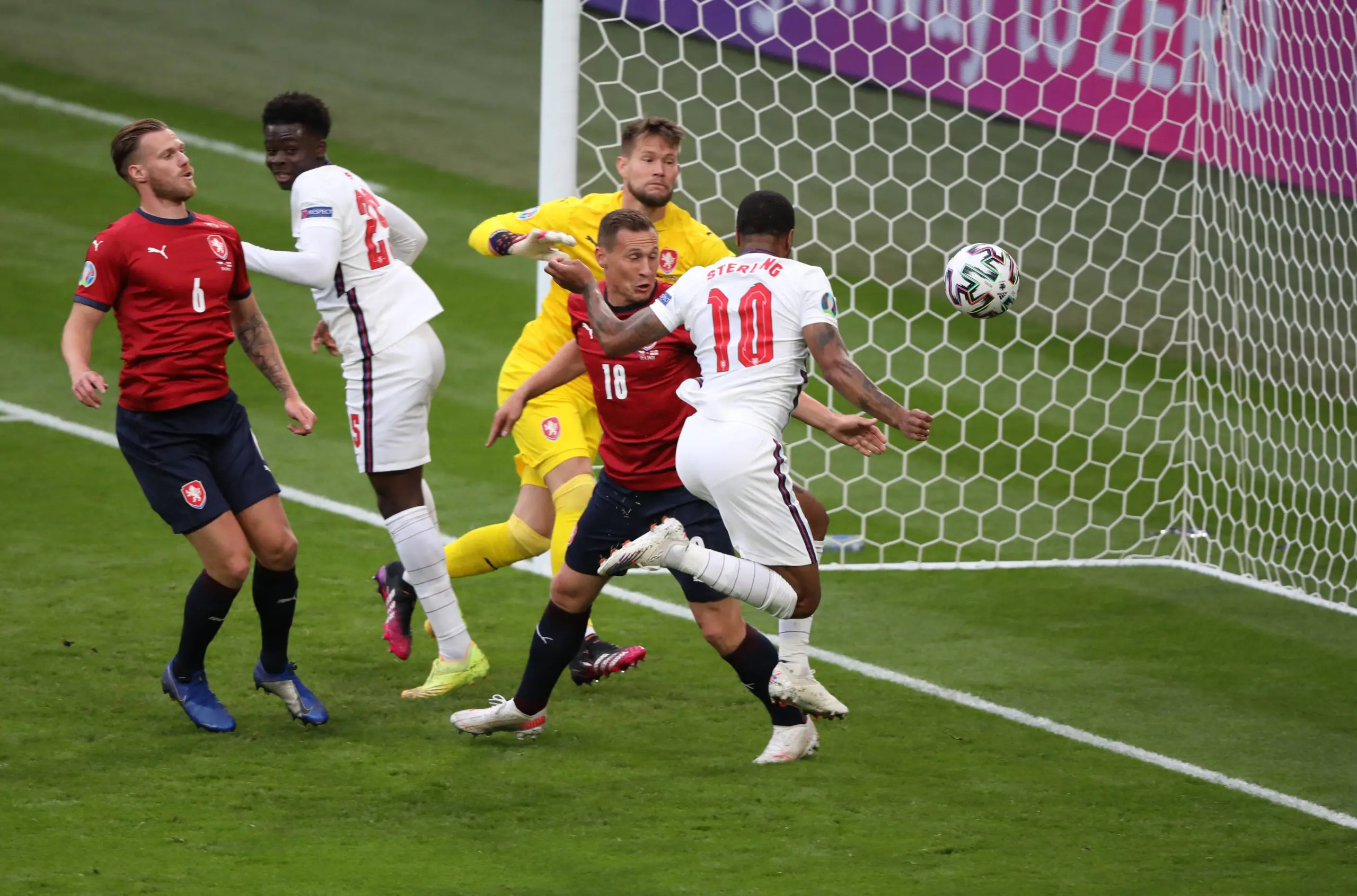 The Czech keeper once again parried away a powerful strike, and with Sterling in an offside position directly in front of him, England couldn’t add to their goal tally.