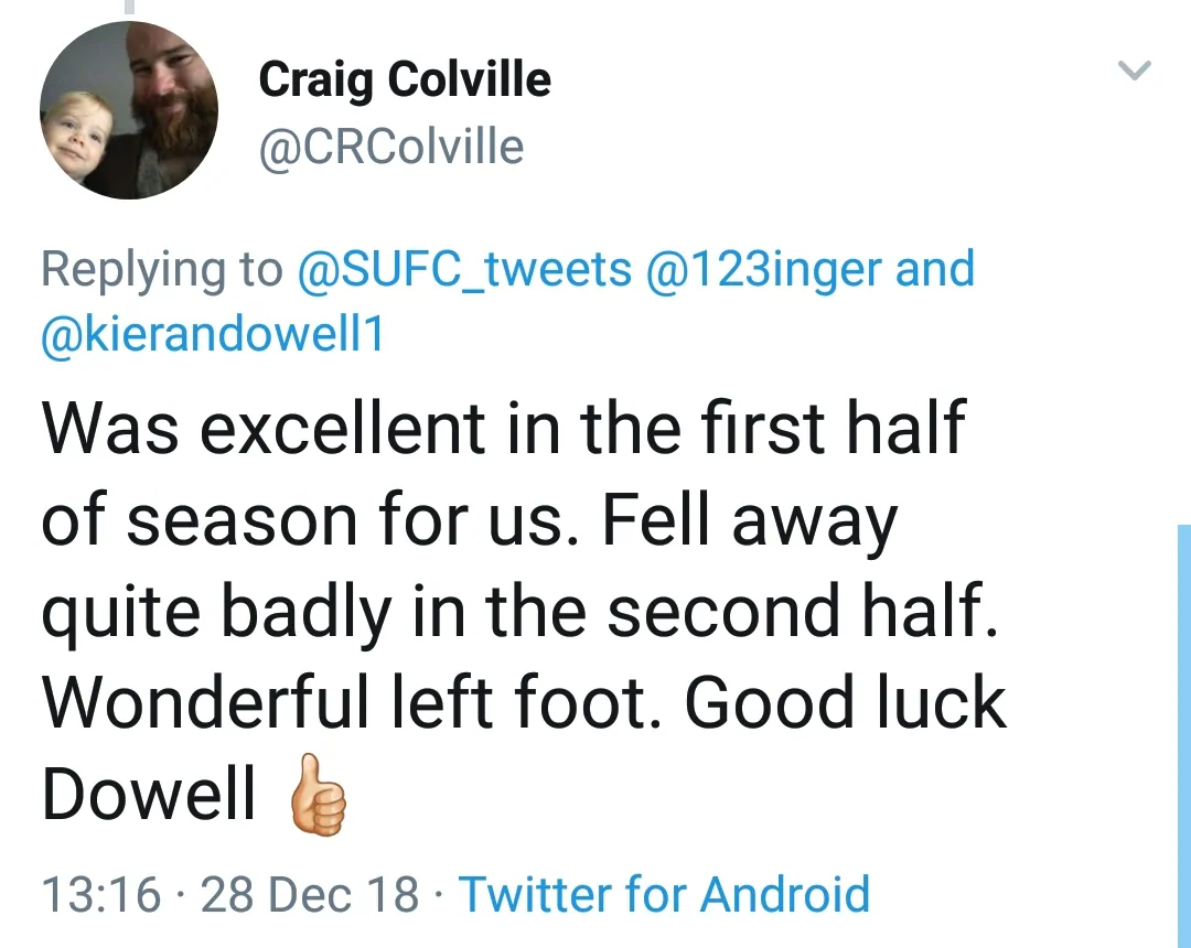 Dowell will be available to make his blades debut during the club’s FA Cup third round tie with Barnet on Sunday 6th of January.