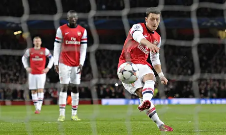 For the second time in the Champions League this season Mesut Ozil failed to score from the penalty spot, making it a hat-trick of misses for the German international.
