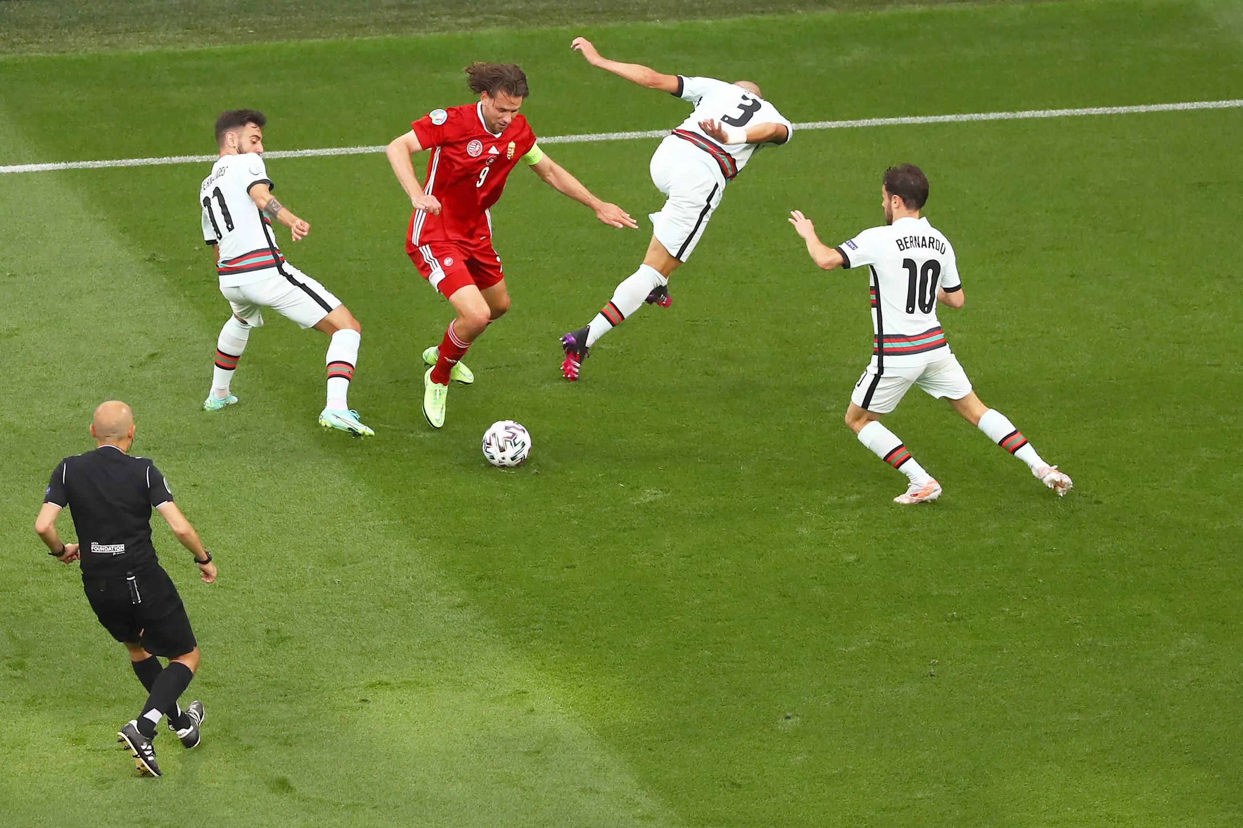 But Portugal were still looking more likely. Gulacsi again had to be at his best, turning Fernandes’ long-range shot wide of the post.