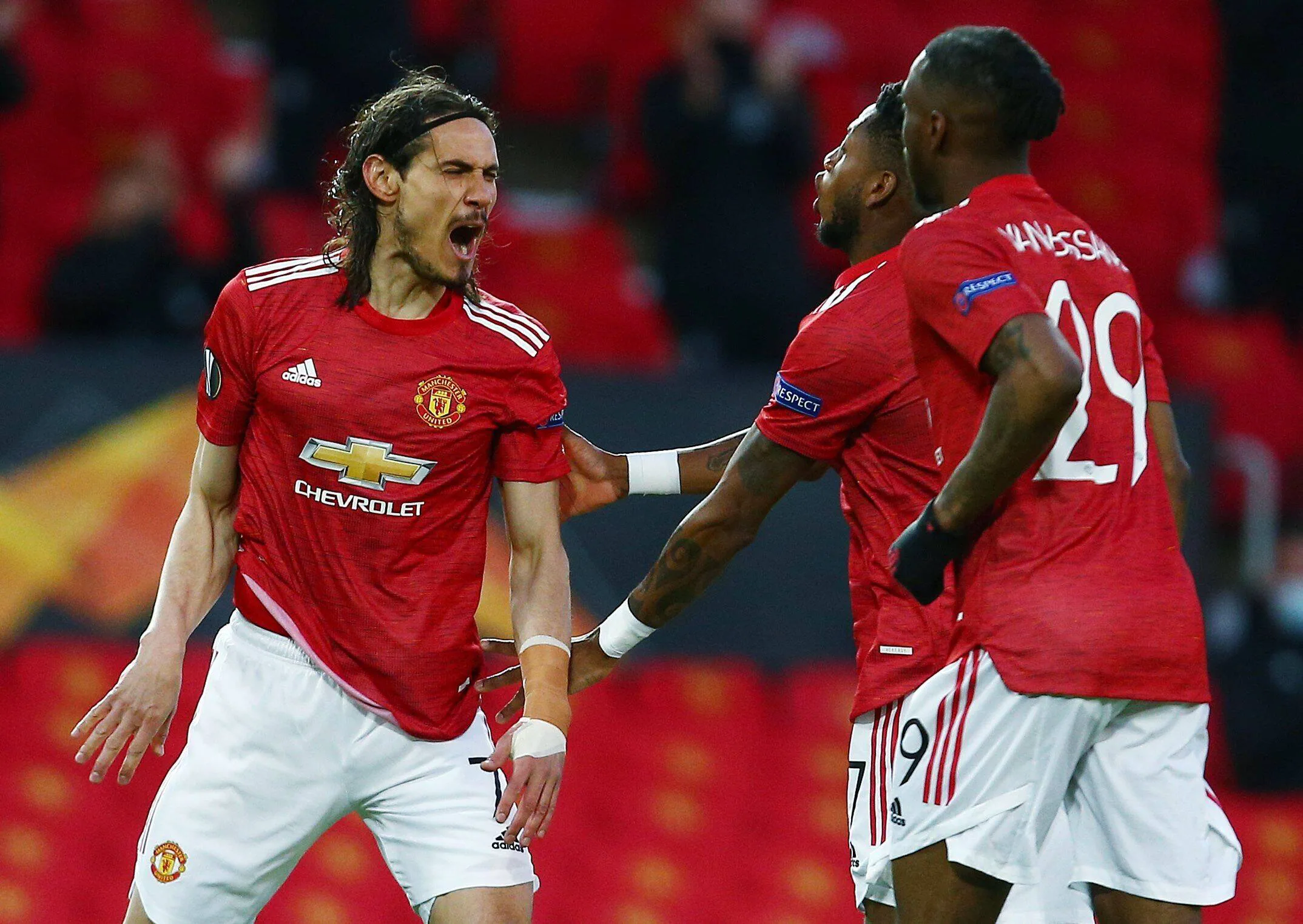 Edinson Cavani’s first European goal for the club and a late own goal by Jesús Vallejo secured a win on the night for the Red Devils and sealed their semi-final place in the process.