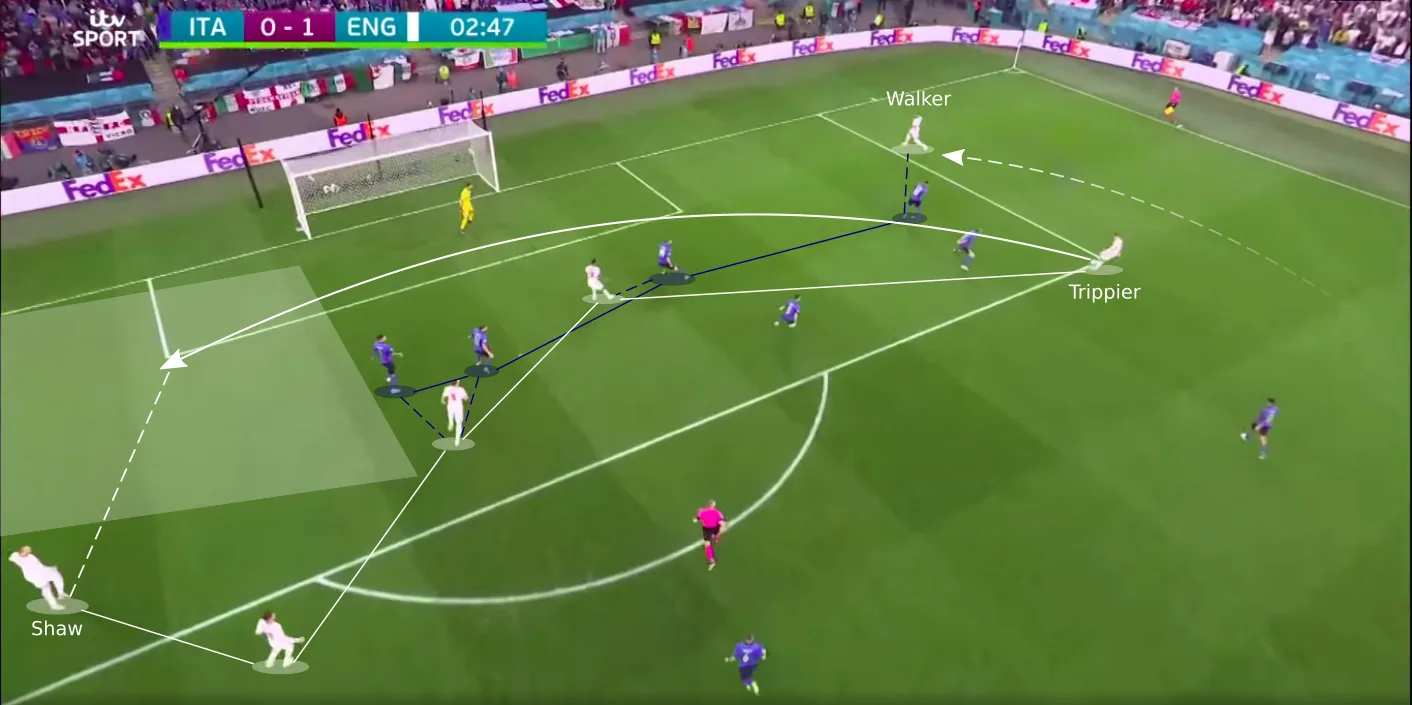 All of this overloading freed up Luke Shaw at the back post, who controlled his volleyed finish incredibly well to give England an early lead.