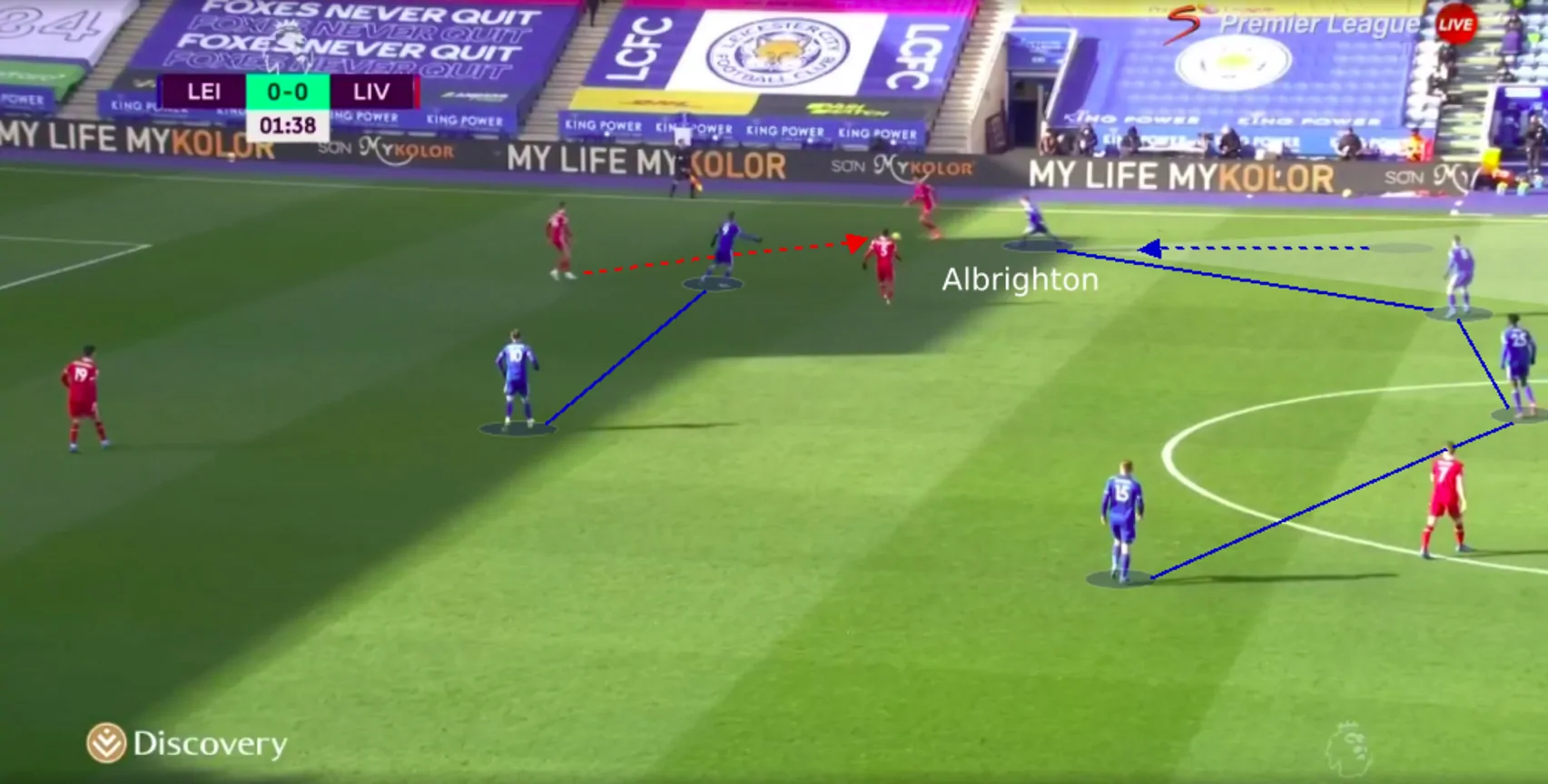 So, Kasper Schmeichel had Daniel Amartey, Jonny Evans, Çağlar Söyüncü and Ricardo Pereira (who was playing at left-back for the first time in his Leicester career) in front of him.
