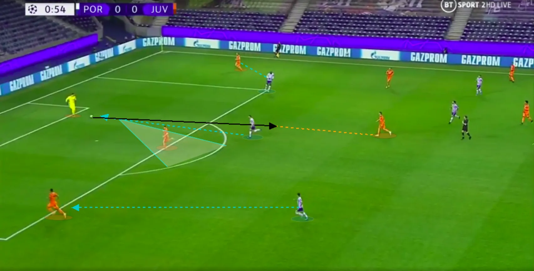 Porto knew that they would have significantly less of the ball, so they did a great job in pressing and neutralising Juventus’ attacking threats with their compact 4-4-2.