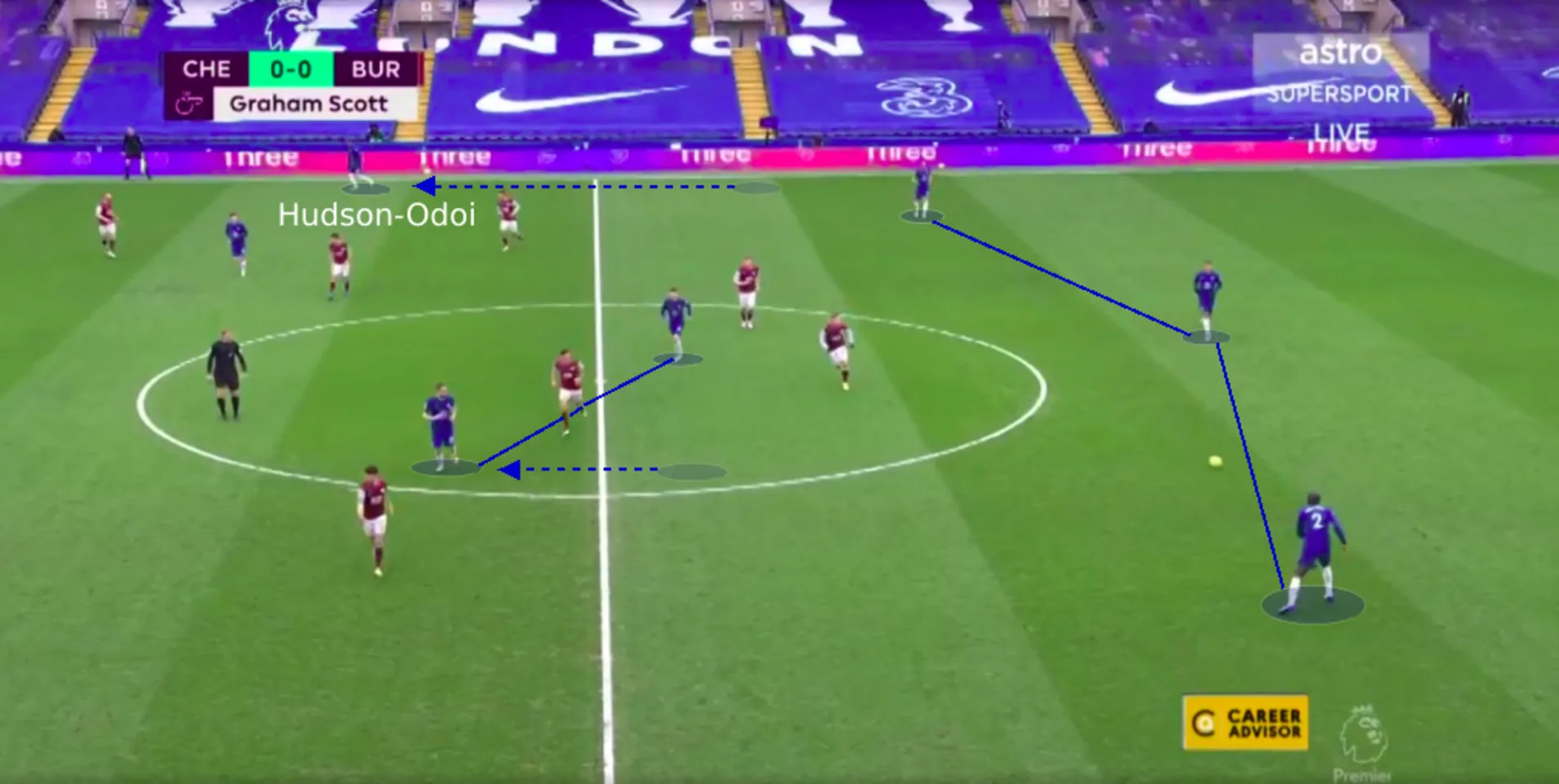 Funnily enough, though, it was a rare Azpilicueta underlap that broke the deadlock. With the front three and Hudson-Odoi occupying one Burnley defender each, the Spanish centre-back was able to get in unmarked and smash the ball home to make it 1-0.