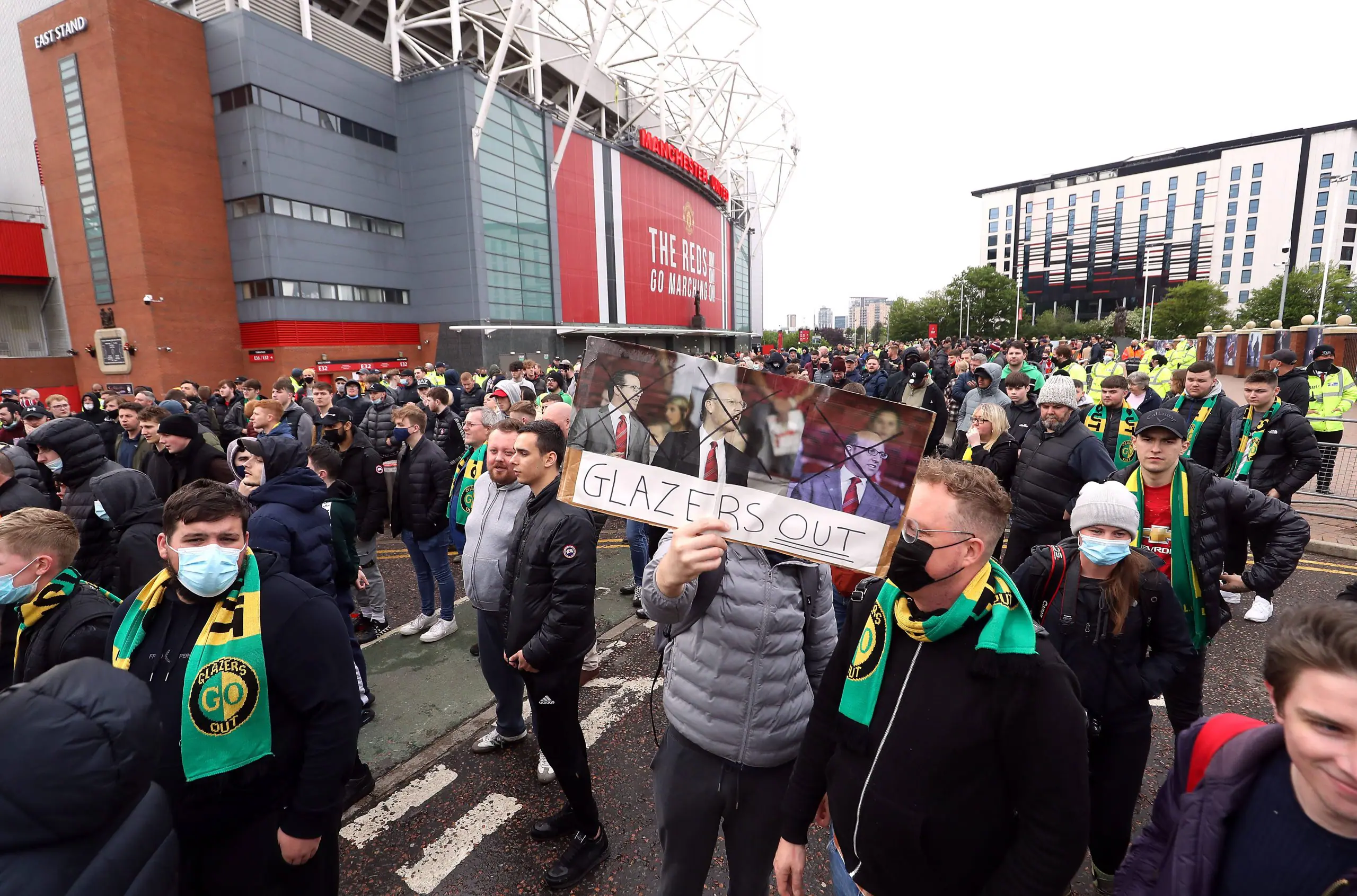 It is now reported that two supporters were arrested in different locations, but the protests were largely peaceful with the fans chanting against the club’s owners.
